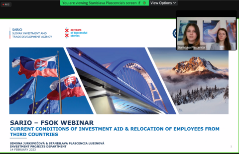 Yesterday, a webinar about the current conditions of investment aid and relocation of employees took place online. We would like to thank the Slovak Investment and Trade Development Agency SARIO for their presentation. You can watch the replay of the webinar here :