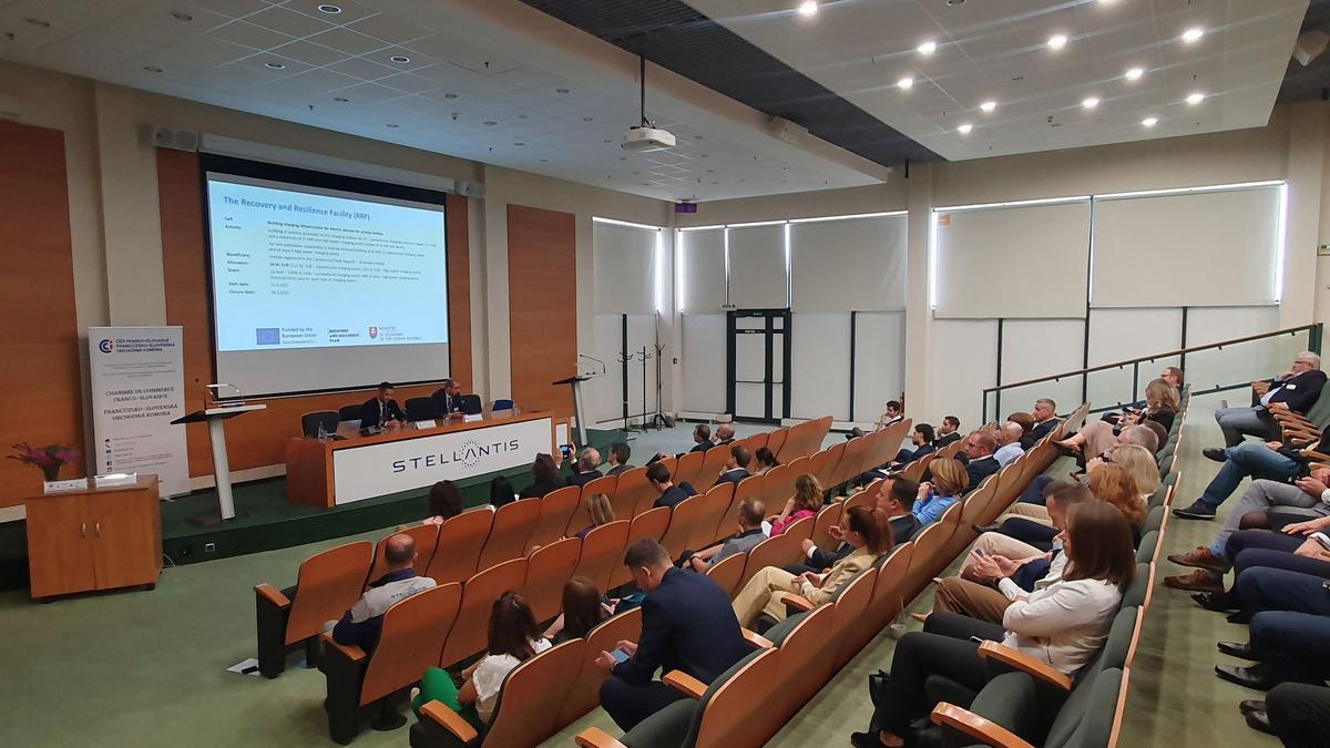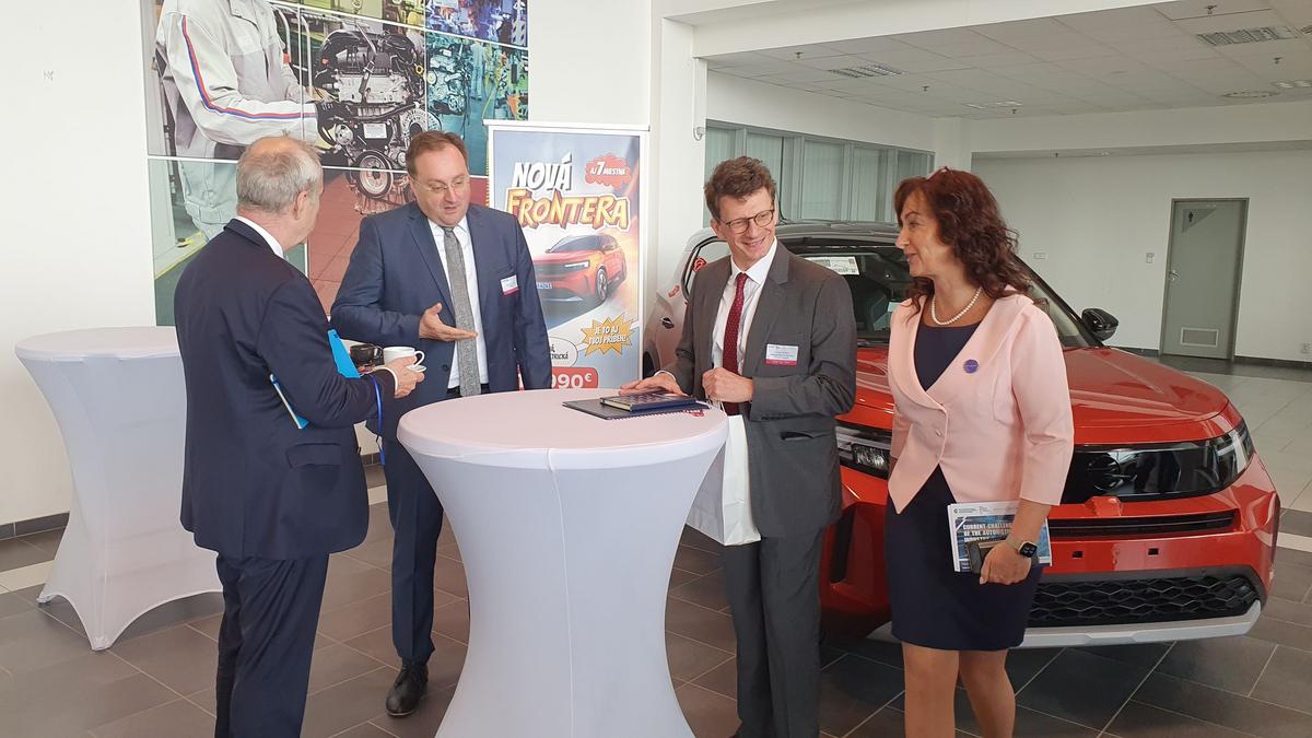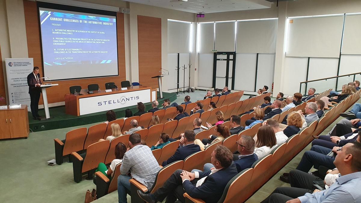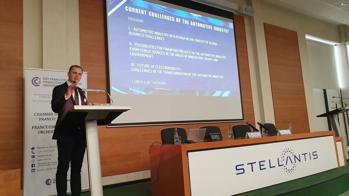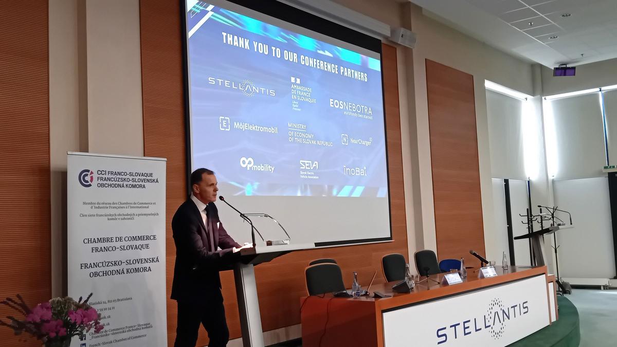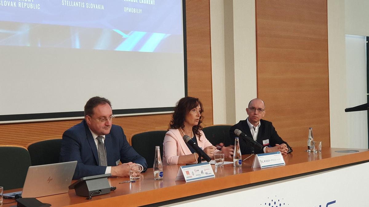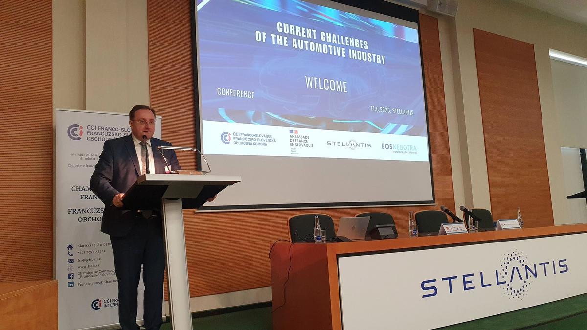 Lors de la conférence CURENT CHALLENGES OF THE AUTOMOTIVE INDUSTRY tenue le 11/6/2025 à l'usine automobile Stellantis, Monika POUSSARD, directrice générale de Stellantis, et Claude LAURENT, directeur technique d’OPmobility, ont évoqué les défis rencontrés et les solutions mises en œuvre. Vladimír ŠIMOŇÁK, Secrétaire d’État au Ministère de l’Économie, a précisé la position de la Slovaquie et les mesures prises pour soutenir l’industrie et les entreprises. L'ambassadeur de France en Slovaquie, Nicolas SURAN, a abordé cette problèmatique au niveau international.