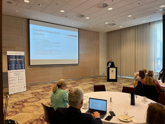Le 24 octobre 2023, la conférence « Customs Coffee » s'est tenue à l'hôtel DoubleTree by Hilton à Košice, où les invités ont appris des informations intéressantes et actuelles sur des sujets tels que l'auto-importation de la TVA, les restrictions contre la Russie, les preuves d'origine du fer et de l'acier lors de l'importation dans l'Union Européenne à partir du 30 septembre 2023 ou la taxe carbone.