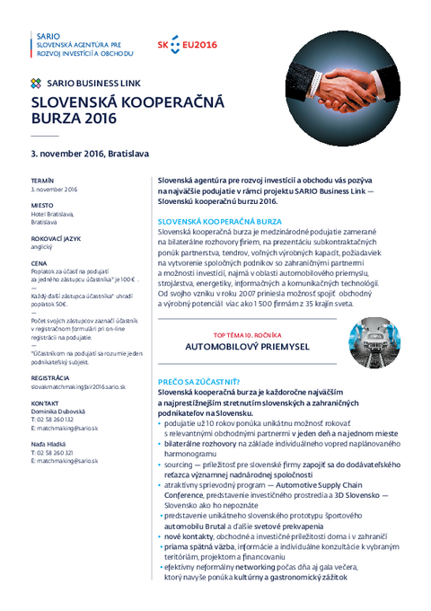 Slovenská kooperačná burza je medzinárodné podujatie zamerané