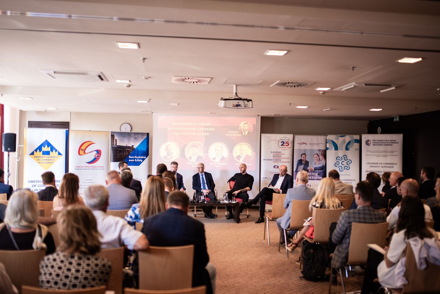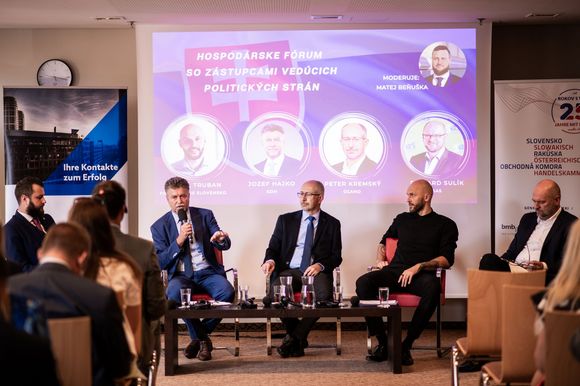 À l'occasion des élections au Conseil national de la République slovaque, un Forum économique avec des représentants des principaux partis politiques a eu lieu hier le 13 septembre. Nous avons organisé cet évenement pour nos membres en coopération avec plusieurs chambres de commerce européennes.