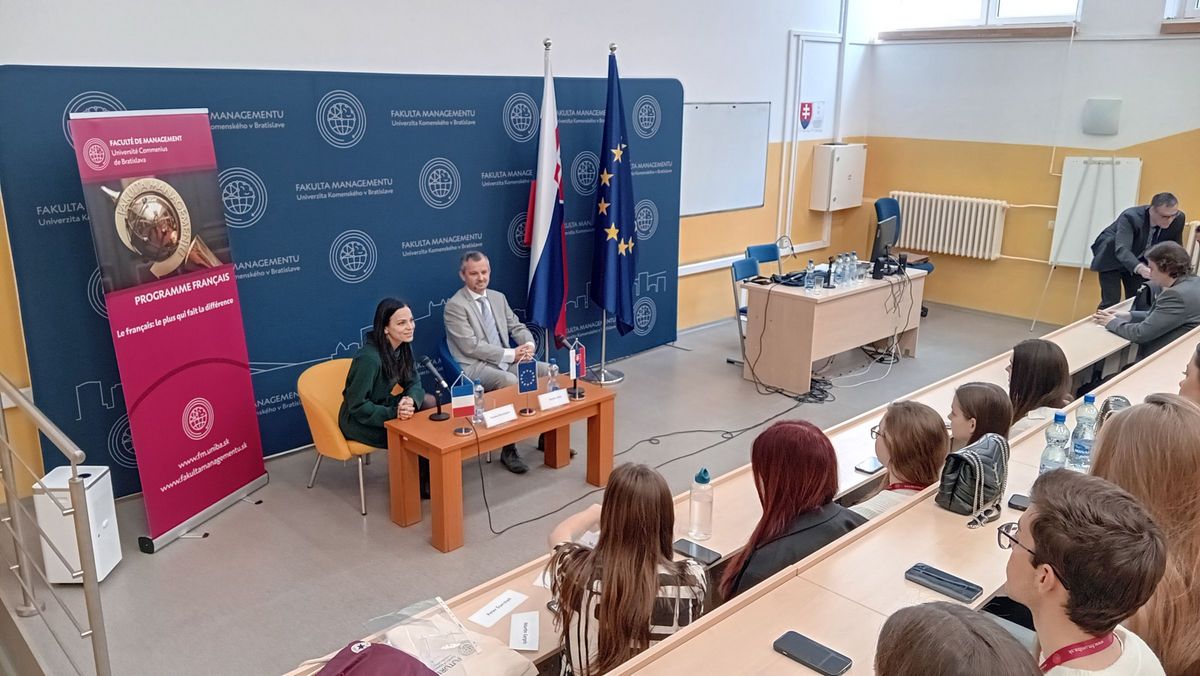Les étudiants ont appris comment maximiser leurs chances sur le marché du travail si, en plus de leur spécialisation, ils ont l’avantage de maîtriser la langue française. La directrice de la CCFS Zuzana Desvergnes leur a fait découvrir la large présence des entreprises françaises en Slovaquie, les étudiants ont été informés du programme V.I.E. qui leur permet d’acquérir une première expérience professionnelle à l’étranger, ils ont pu s’inspirer des expériences et du travail de quelques Slovaques qui utilisent le français dans leur profession actuelle, et les représentants de certaines facultés françaises leur ont présenté les possibilités de carrière professionnelle après les études.
