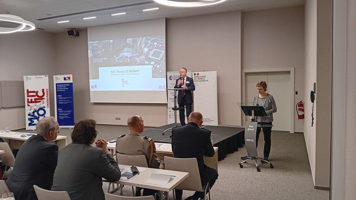 Le mercredi 13.03.2024, s'est tenue la 2e édition du French Defense, Security and Cybersecurity Tour en Slovaquie au Park Inn by Radisson Danube Hotel à Bratislava. Cet événement franco-slovaque dédié aux secteurs de la défense, de la sécurité et de la cybersécurité a de nouveau eu lieu à Bratislava après 3 ans grâce à la coopération avec Business France Czech Republic et a été l'occasion d'établir de nouveaux courants d'affaires dans les secteurs public et privé.