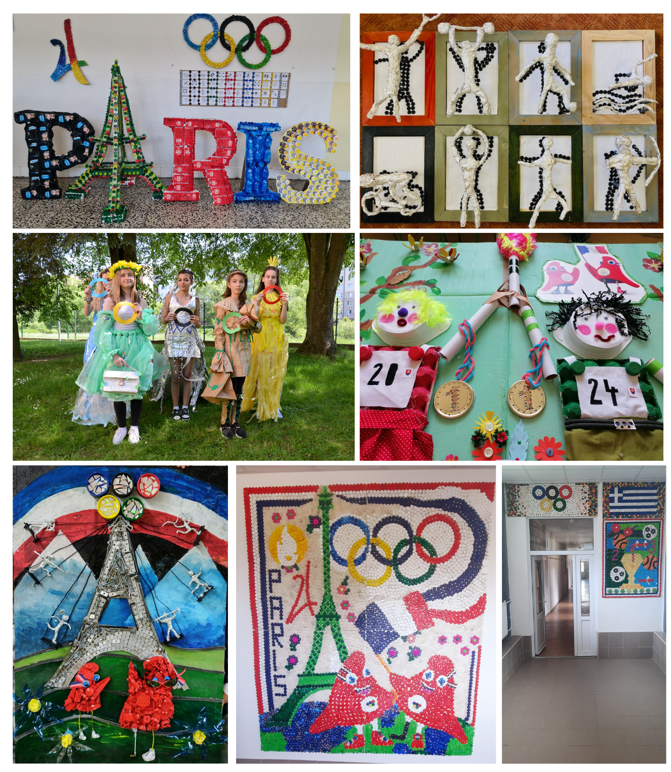 Les étudiants ont créé une œuvre intitulée "Olympiade à Paris", qui se compose de quatre parties. Elle est composée principalement de bouchons de bouteilles en plastique, avec lesquels les étudiants ont créé des bonnets phrygiens, la tour Eiffel et le logo des Jeux Olympiques. Les élèves collectaient depuis plusieurs années des bouchons de bouteilles en plastique. Dans le cadre de ce défi, ils ont mis en relation l'éducation environnementale, la biologie, la technologie et l'éducation artistique. Sur la partie des Jeux olympiques de Paris sont affichés les anneaux olympiques, les mascottes olympiques - bonnets phrygiens, le logo olympique et la tour Eiffel.