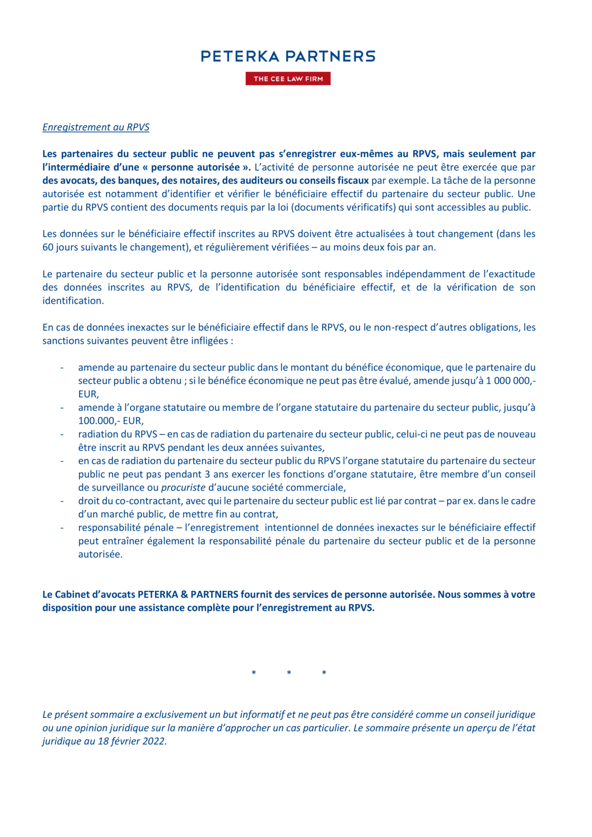 Nouvelle obligation d’enregistrement au Registre des partenaires des personnes publiques (Register partnerov verejného sektora – RPVS)