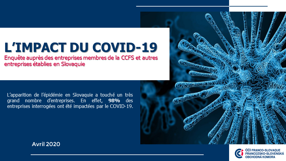 Début avril la Chambre de Commerce Franco-Slovaque a mené une enquête auprès ses membres et autres sociétés ayant une activité en Slovaquie. L’objectif était d’analyser l’impact du COVID-19 sur leur fonctionnement et leurs activités économiques. Ceux-ci seront communiqués aux autorités concernées.