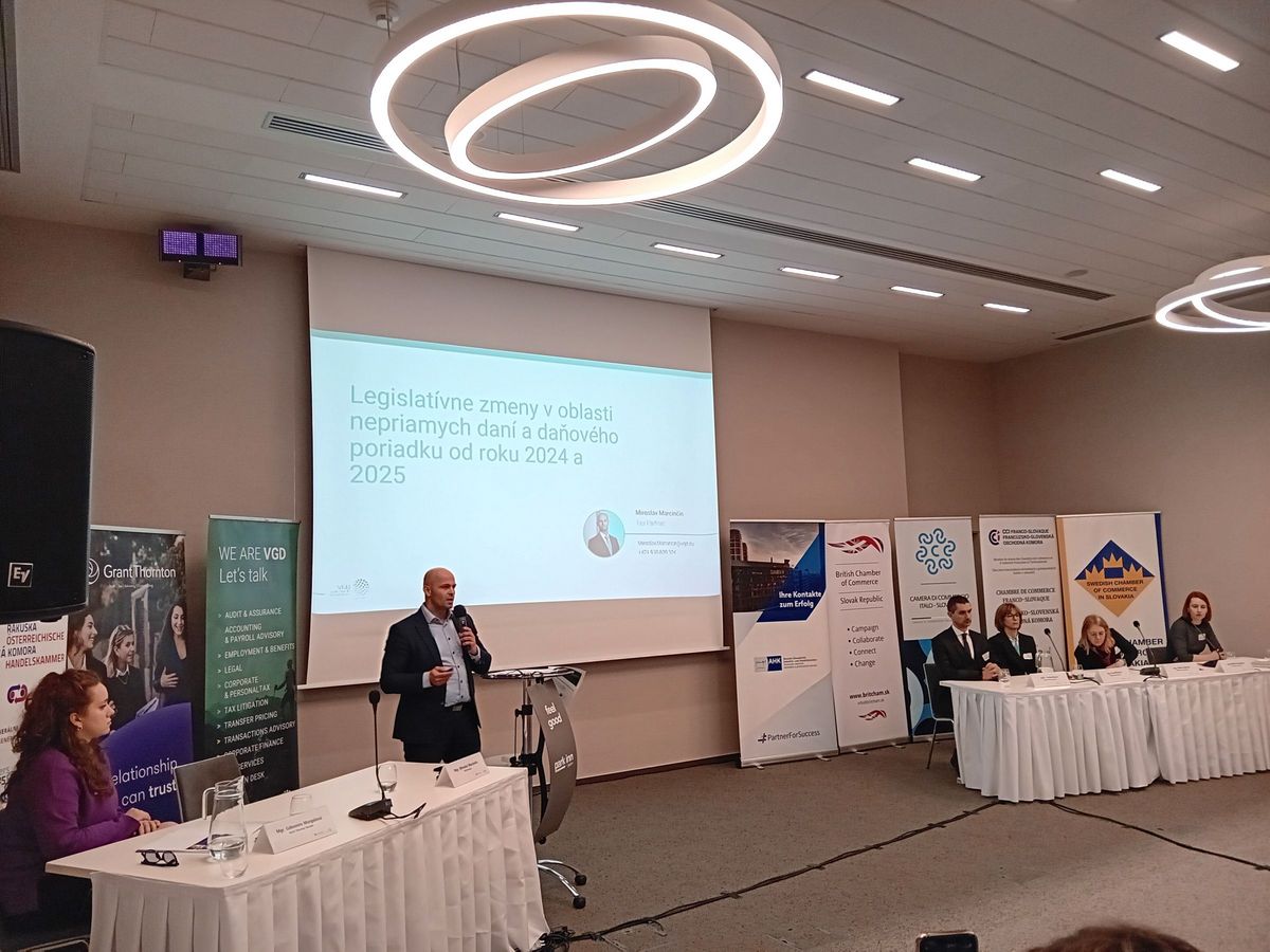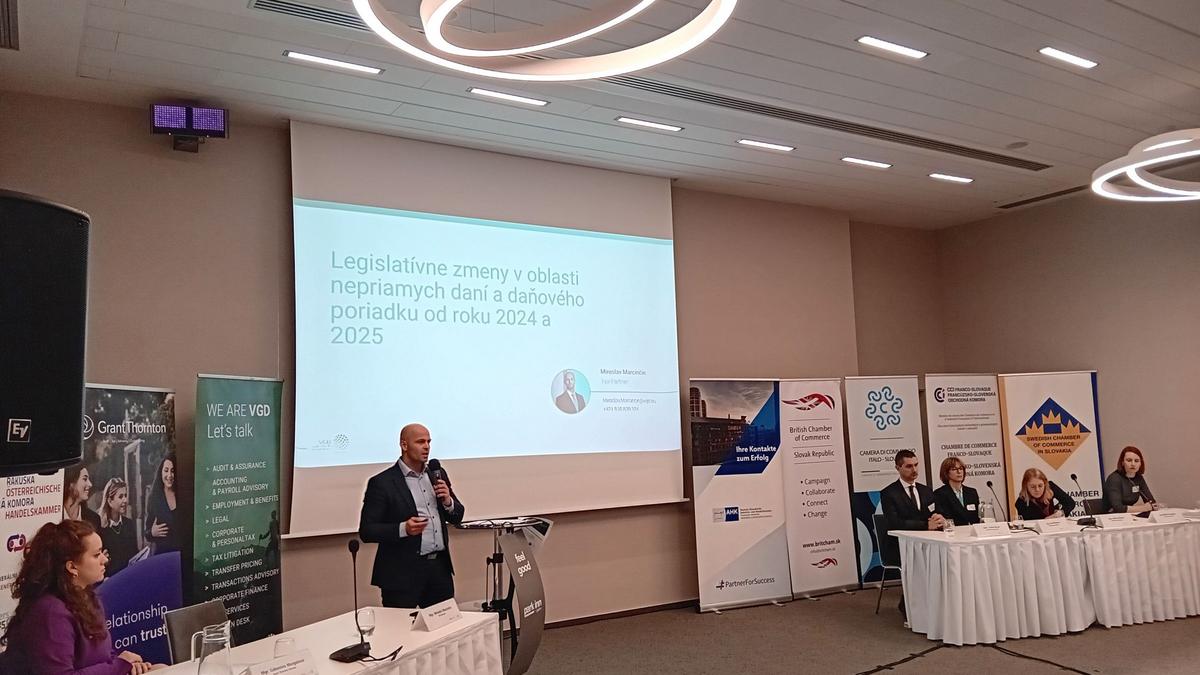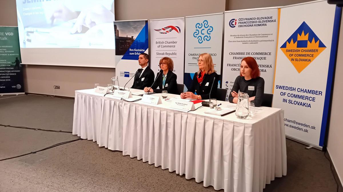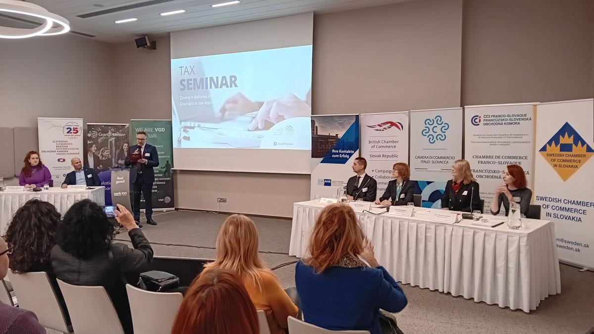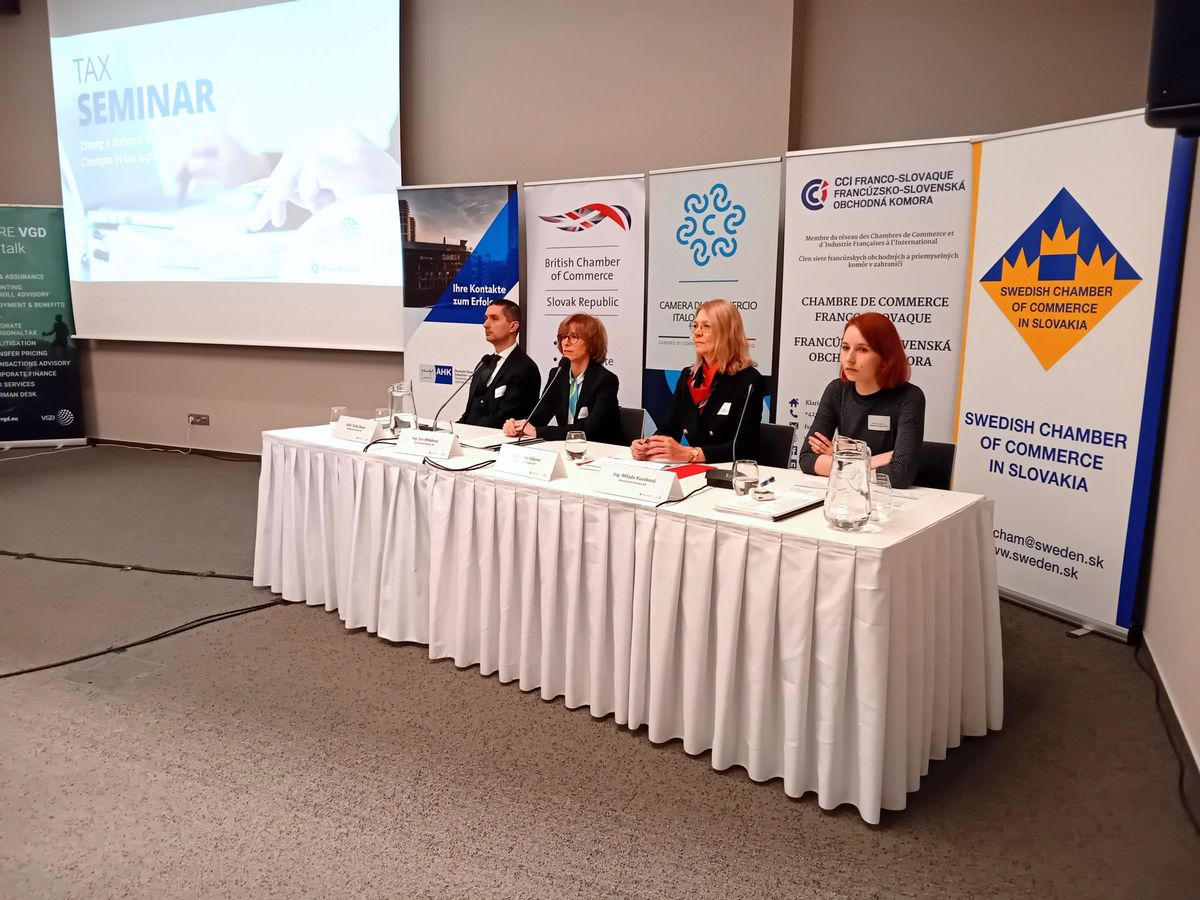 Les participants du séminaire fiscal, organisé le 8 février à l’hôtel Park Inn by Radisson Danube à Bratislava par les chambres de commerce étrangères en Slovaquie, l’ont appris. Le séminaire était animé par les représentants des sociétés Grant Thornton Slovakia – Ľubomíra Murgašová et VGD Slovakia – Miroslav Marcinčin, qui ont présenté les amendements des lois relatives à l’impôt sur le revenu et de taxe sur la valeur ajoutée. Leurs invités, les représentants du Ministère des finances de la République Slovaque, ont parlé des modifications législatives prévues, de l’impôt minimum, des directives ouvertes de l’agenda de l’UE et de l’ensemble des règlements ViDA – TVA à l’ère numérique.