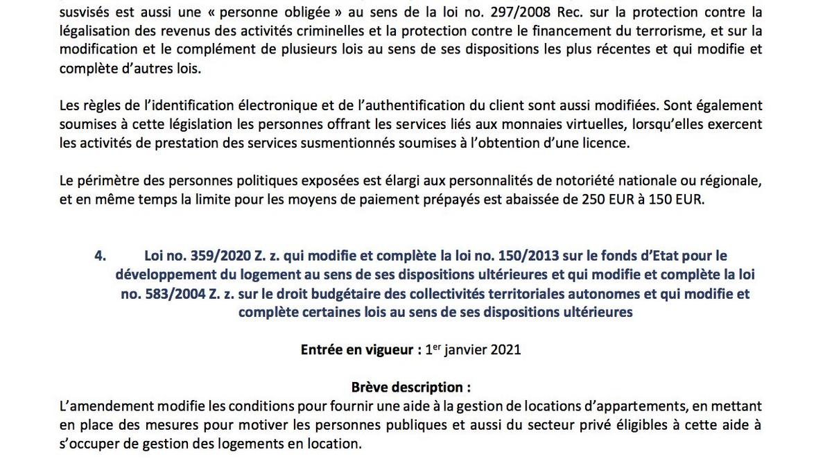Suivi de la législation (janvier, février 2021)