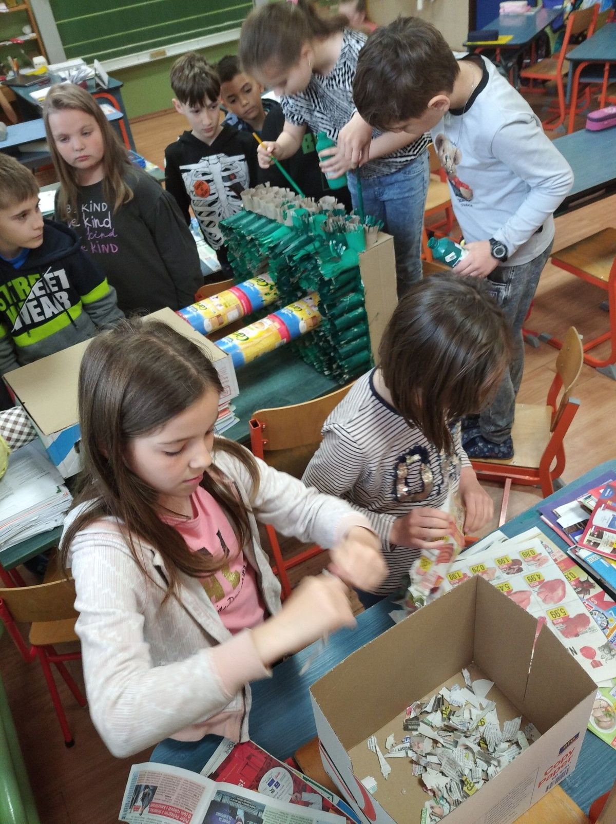 • Noviny (všetky škatule sú oblepené starými novinami)