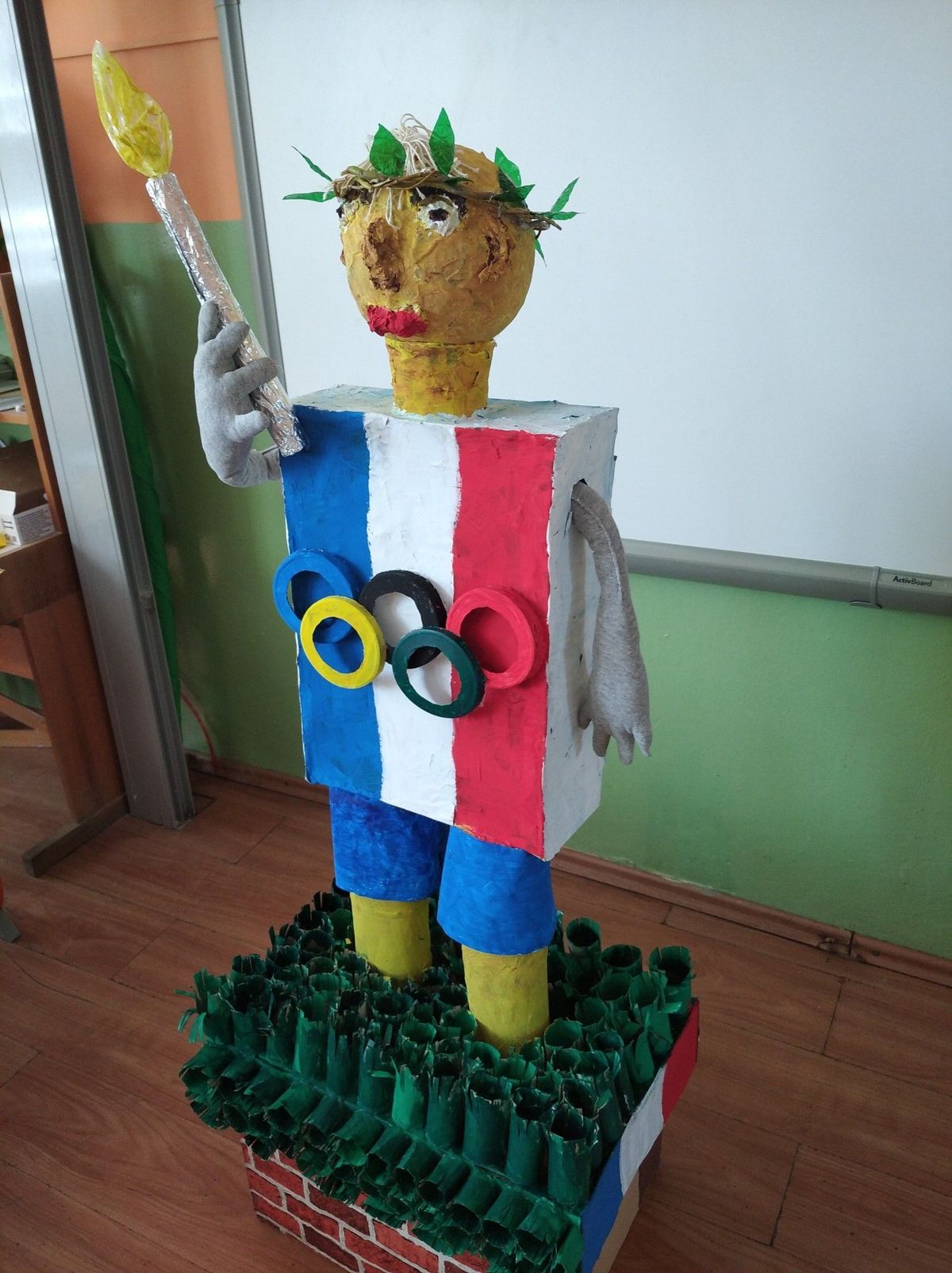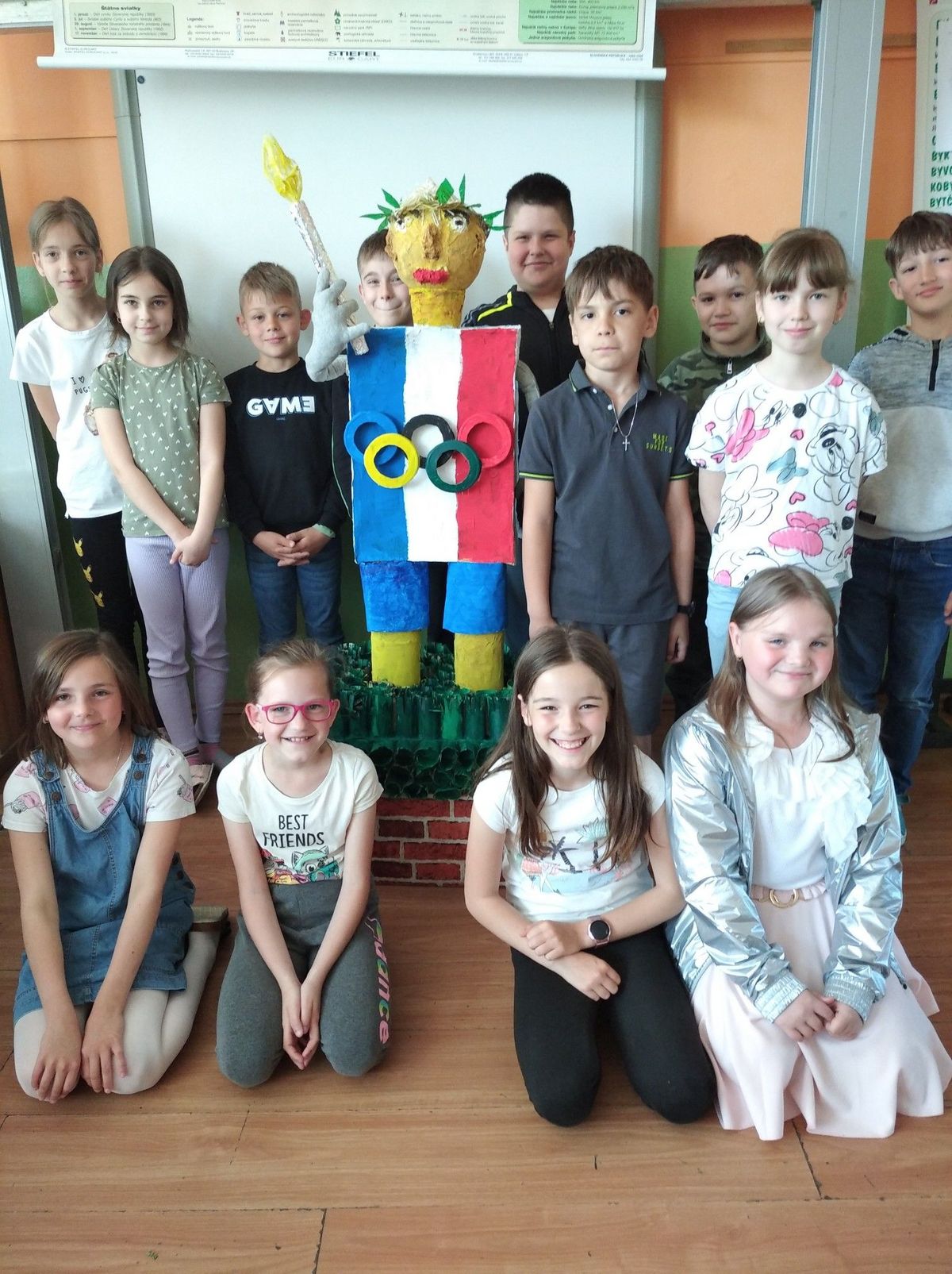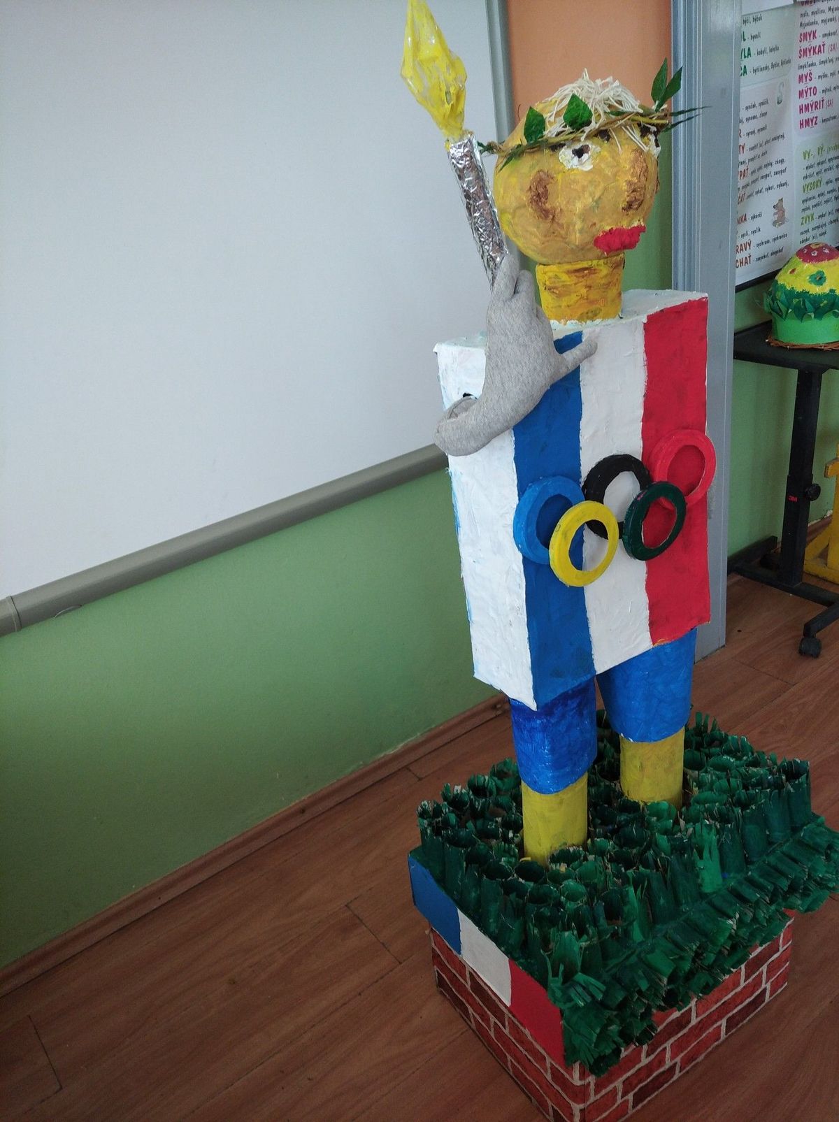 My, žiaci zo Základnej školy v Ruskove, veľmi radi cvičíme, beháme, bicyklujeme sa a súčasne aj triedime odpad. Tri týždne sme lepili, strihali, maľovali postavu športovca Pjéra, ktorý nesie olympijský oheň. Celá postava športovca Pjéra je vytvorená z odpadových materiálov. Pjér sa stal naším kamarátom a dúfame, že poteší aj Vás.