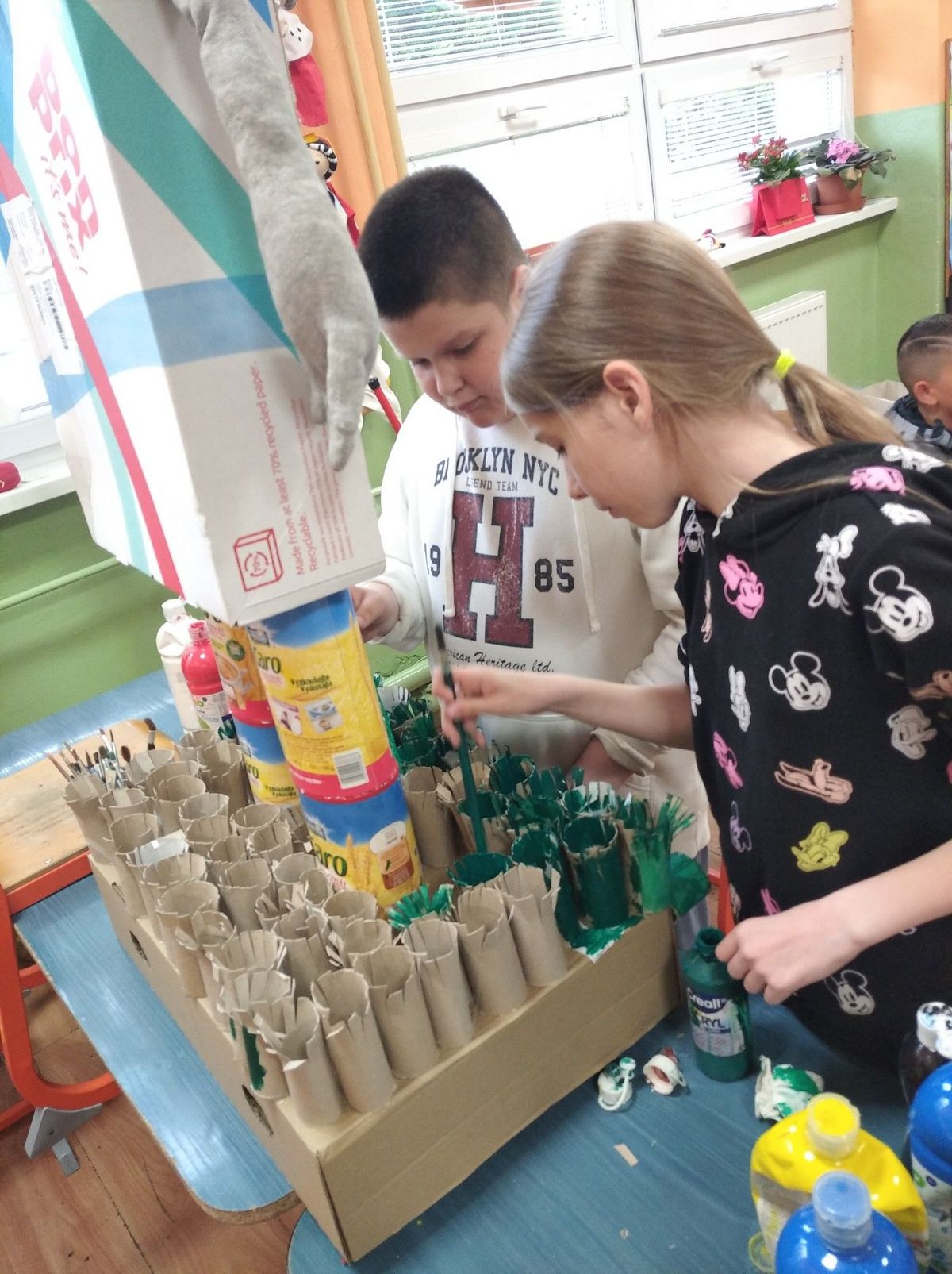 • Kartónové rolky z WC papierov (tráva)