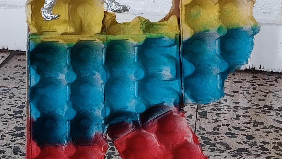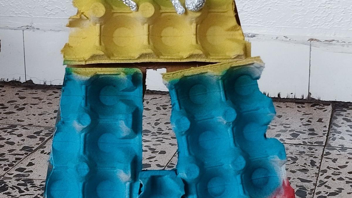 Použité materiály: Korky z vína, rôzne obaly z pochutín, vrchnáky z plastových fliaš, obaly z vajíčok, plechovky,