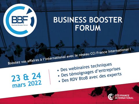 En coopération avec CCI France International, nous vous invitons à la 3ème édition du Business Booster Forum. Nous souhaitons attirer votre attention en particulier sur les webinaires ci-dessous, mais vous trouverez le programme complet ICI.