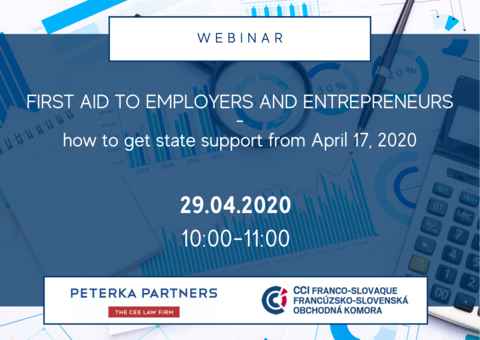 In cooperation with our member PETERKA & PARTNERS we would like to invite you to a webinar with focus on topic: First Aid to employers and entrepreneurs - how to get state support from April 17, 2020.