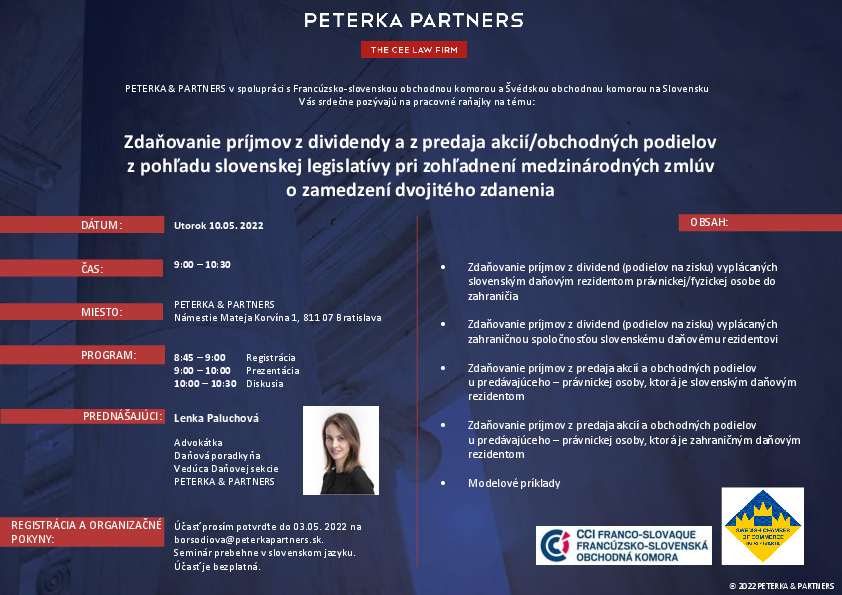 Imposition des revenus de dividendes et des revenus de la vente d'actions du point de vue de la législation slovaque, en tenant compte des conventions internationales en matière de double imposition