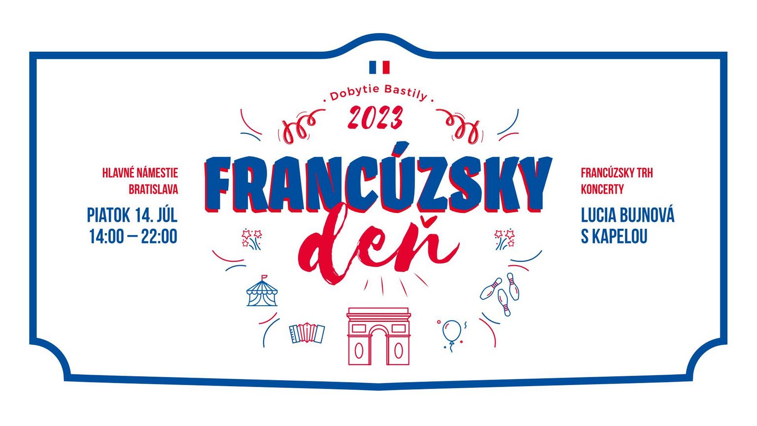 14 juillet revient au cœur de Bratislava sur la place principale. Avec les habitants et les visiteurs de la capitale, nous célébrerons la fête nationale française, à l’occasion de l’anniversaire de la conquête de la Bastille, pour la onzième fois. Symbole de « l’Ancien Régime », la Bastille est envahie et conquise par les Parisiens le 14 juillet 1789. Cet événement marque le début de la Grande Révolution française (1789-1799), au cours de laquelle les fondements des droits de l’homme sont posés pour la première fois.