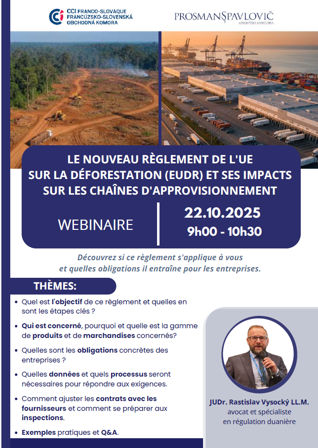 Nous organisons ce webinaire en collaboration avec notre membre PROSMAN PAVLOVIČ a.k. et Rastislav Vysocký, avocat et spécialiste en régulation douanière vous précisera les points suivnants: