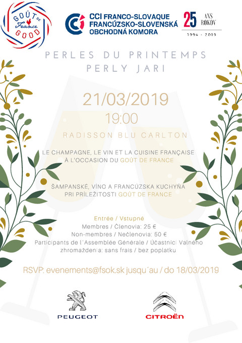 Nous vous prions de bien vouloir confirmer votre présence avant le 18 mars 2019 sur evenements@fsok.sk.