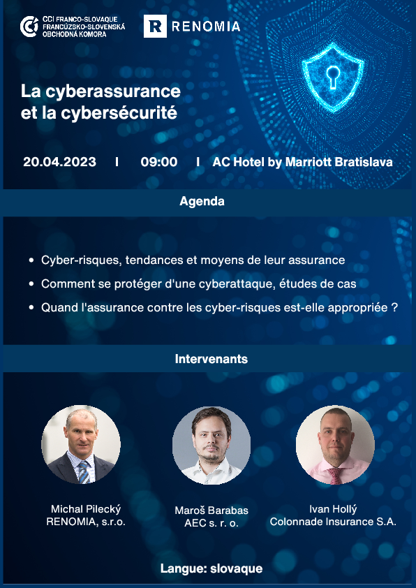 La cyberassurance et la cybersécurité sont sans aucun doute des domaines d'actualité et de grande importance pour chaque entreprise. Nous vous invitons donc à en apprendre plus sur ce sujet lors d'un petit-déjeuner débat organisé en collaboration avec notre membre RENOMIA. Vous acquerrez des connaissances précieuses ainsi que des conseils pratiques qui vous aideront à améliorer la sécurité de votre entreprise et à minimiser les risques causés par les cyberattaques.