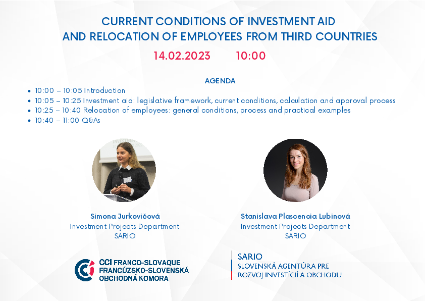 Webinar : Current Conditions of Investment Aid and Relocation of Employess from Third Countries