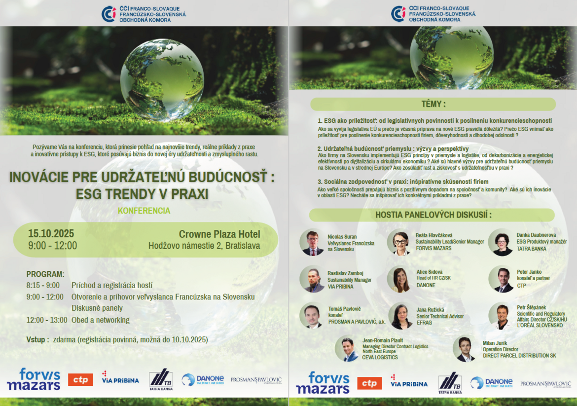 ESG konferencia - INOVÁCIE PRE UDRŽATEĽNÚ BUDÚCNOSŤ: ESG trendy v praxi