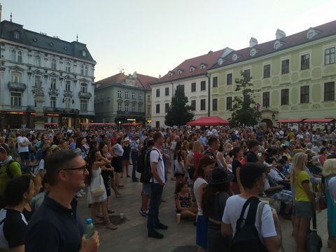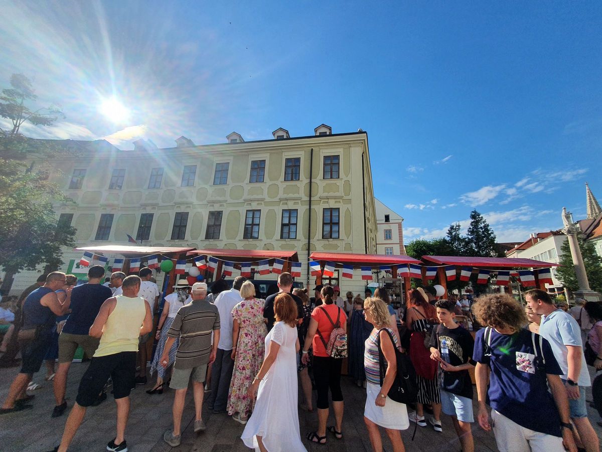 Minulý štvrtok sa na Hlavnom námestí v Bratislave konali oslavy pri príležitosti francúzskeho štátneho sviatku 14. júla. Pre návštevníkov bol pripravený bohatý kultúrny program - kreatívne aktivity pre deti a burza kníh pripravené Francúzskym inštitútom - a francúzske výrobky stáli v centre pozornosti : palacinky, syry, vína a iné ste našli na francúzskom trhu, ktorý tvorila dvadsiatka stánkov vo farbách Francúzska. Nezabúdajme ani na hudobné skupiny Bolides, Roc’hann a finalistov súťaže Spievam po francúzsky, ktorí Slovákov počas večera roztancovali v rytme francúzskych piesní.