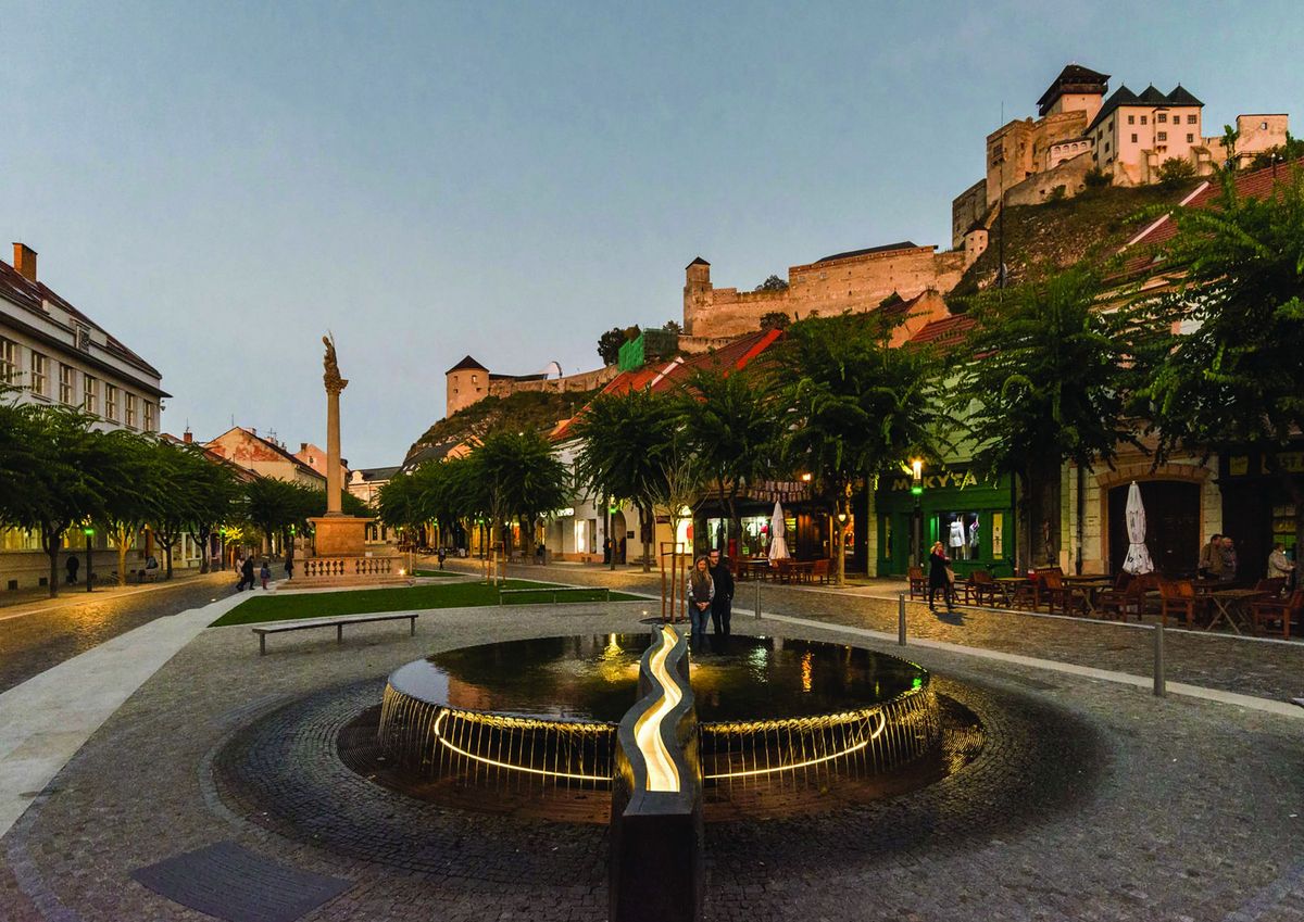 Centrálna mestská plocha námestia lemovaná pôvodným stromoradím v sebe harmonicky spája historické časti s novovybudovanými stavebnými prvkami – plastickým modelom mesta a novovybudovanou Zlatou fontánou Marca Aurélia z dielne akademického sochára a dizajnéra Jiřího Plieštika, ale hlávne spojila a v budúcnosti aj bude spájať ľudí.