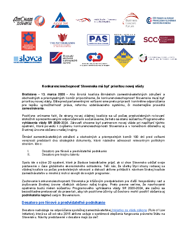 Konkurencieschopnosť Slovenska má byť prioritou novej vlády