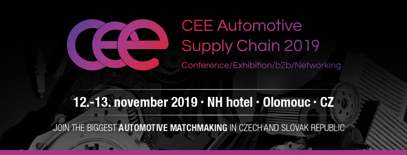 Už tretí ročník podujatia CEE Automotive Supply Chain 2019 sa bude tento rok konať v českom Olomouci 12. - 13. novembra 2019. Medzinárodné fórum, ktoré tvorí konferencia, výstava, B2B rokovania a networking navštívilo minulý rok 400 delegátov zo 14 rôznych krajín.