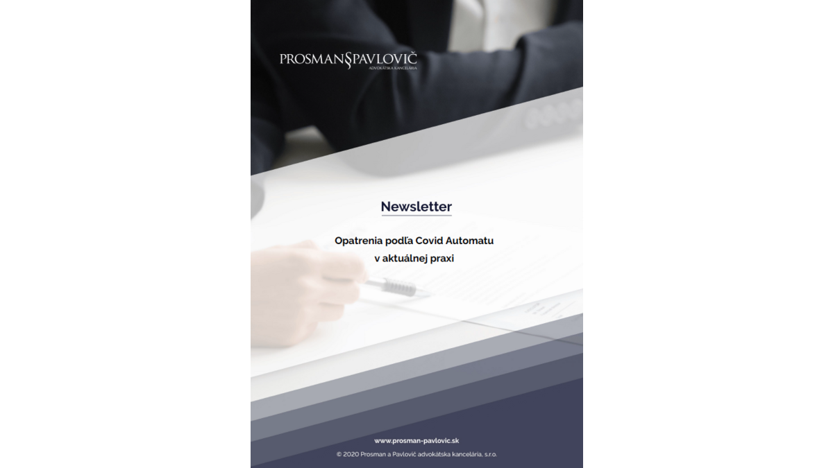 Podrobnejšie informácie nájdete nižšie v newsletteri na stiahnutie, ktorý pre Vás pripravil náš člen PROSMAN a PAVLOVIČ advokátska kancelária s.r.o.