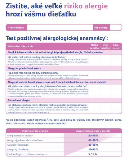 si kalkulačku pozitívnej alergologickej anamnézy. Tento pomocný nástroj pomôže určiť pravdepodobnosť výskytu alergií u detí aj v skorom veku. Včasné objavenie rizík je kľúčom