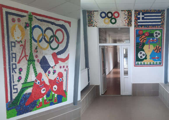 Žiaci vytvorili dielo s názvom "Olympiáda v Paríži", ktoré sa skladá zo štyroch menších dielov. Pozostáva prevažne z vrchnákov PET fliaš, z ktorých žiaci vytvorili frygické čiapky, Eiffelovu vežu aj logo OH. Zbieraniu vrchnákov z PET fliaš sa žiaci na škole venujú už niekoľko rokov. V rámci tejto výzvy prepojili environmentálnu výchovu, biológiu, techniku a výtvarnú výchovu. Na Diele olympiáda v Paríži sú zobrazené olympijské kruhy, maskoti OH - frygické čiapky , logo OH, Eiffelovka.
