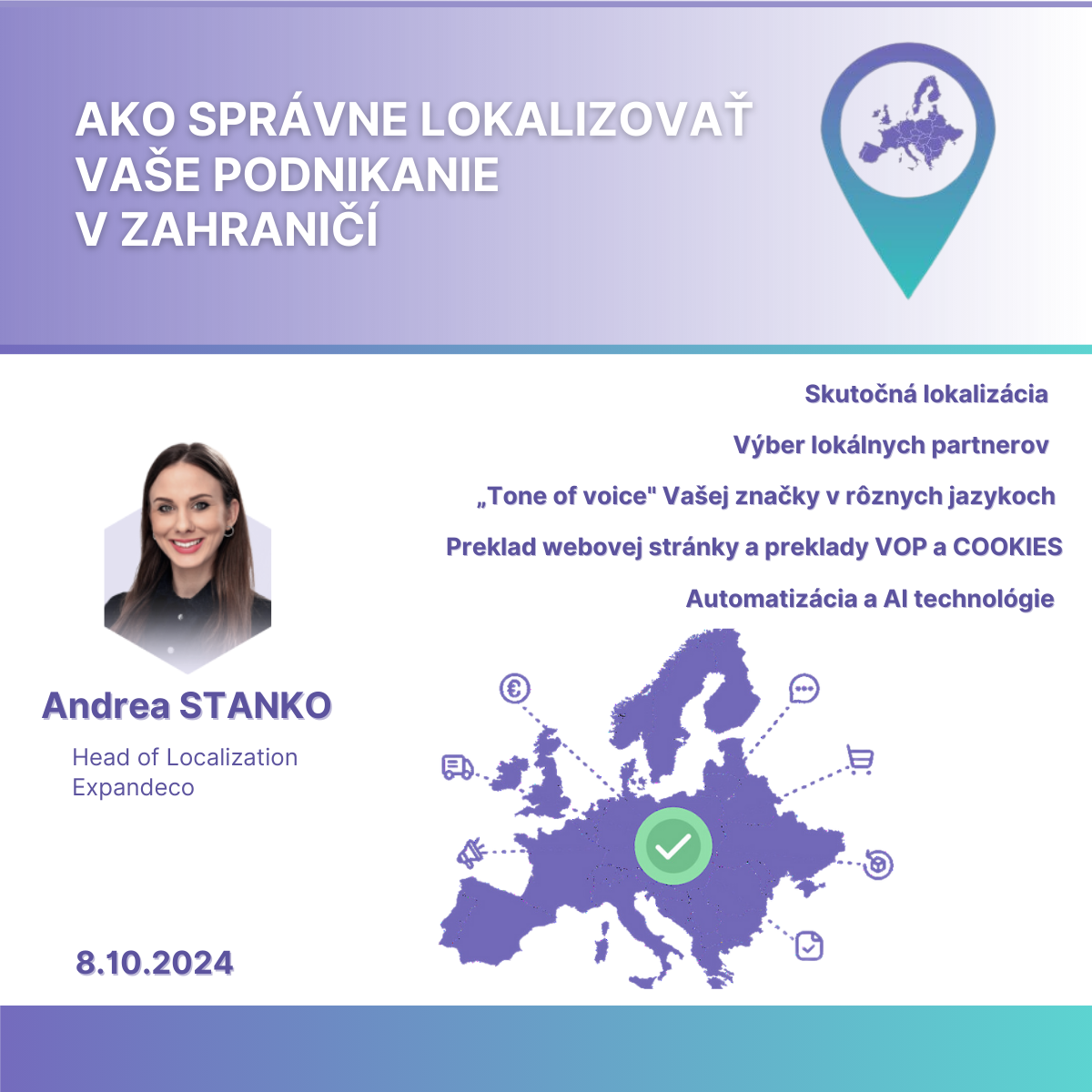 Ďakujeme Andrea Stanko a Expandeco.sk, že ste nám na webinári priblížili komplexnosť lokalizácie podnikania a webov v inej krajine a dali užitočné rady. Už vieme, na čo si dávať pozor, aby sme pri lokalizácii nášho podnikania v zahraničí uspeli. ?