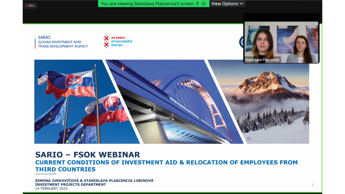 Yesterday, a webinar about the current conditions of investment aid and relocation of employees took place online. We would like to thank the Slovak Investment and Trade Development Agency SARIO for their presentation. You can watch the replay of the webinar here :