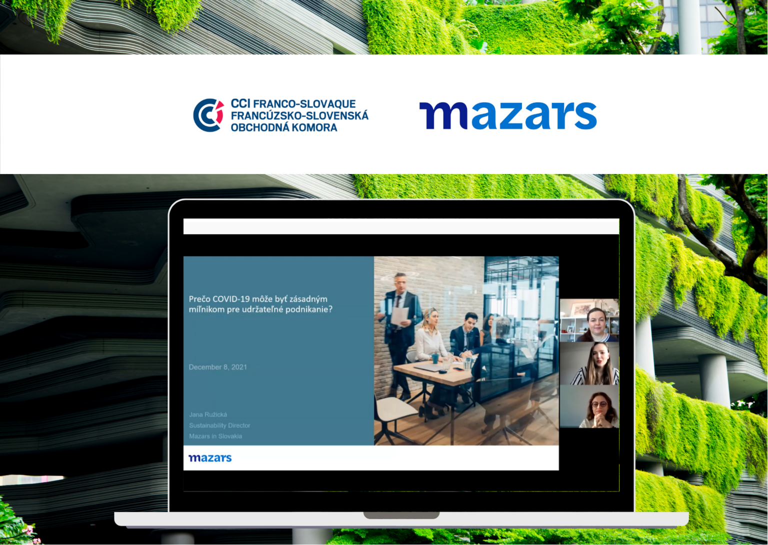 V utorok sme v spolupráci s Mazars zorganizovali webinár na aktuálnu tému ESG. Ďakujeme Janka Ružická (Mazars Slovensko) a Andrea Ungvölgyi (Nadácia Orange) za zdieľanie ich skúseností a prajeme veľa úspechov v ďalších projektoch. Záznam z webinára nájdete tu : https://www.youtube.com/watch?v=cqYVvy8y9E0 .