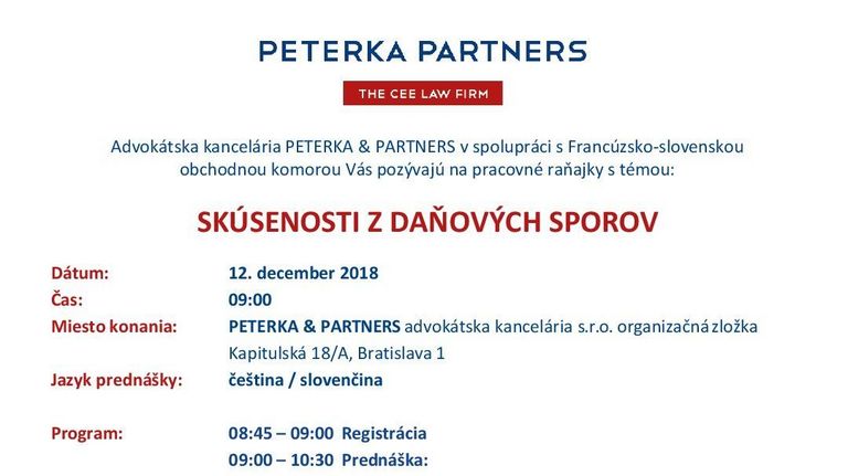 Ďakujeme nášmu členovi PETERKA & PARTNERS za dnešné pracovné raňajky na tému Odbory na pracovisku a dôsledky pre zamestnávateľa. Túto oblasť…