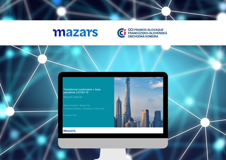 Dňa 9. februára 2021 sa konal webinár venovaný dopadu pandémie COVID-19 na transferové oceňovanie. Ďakujeme nášmu členovi Mazars za organizáciu a…